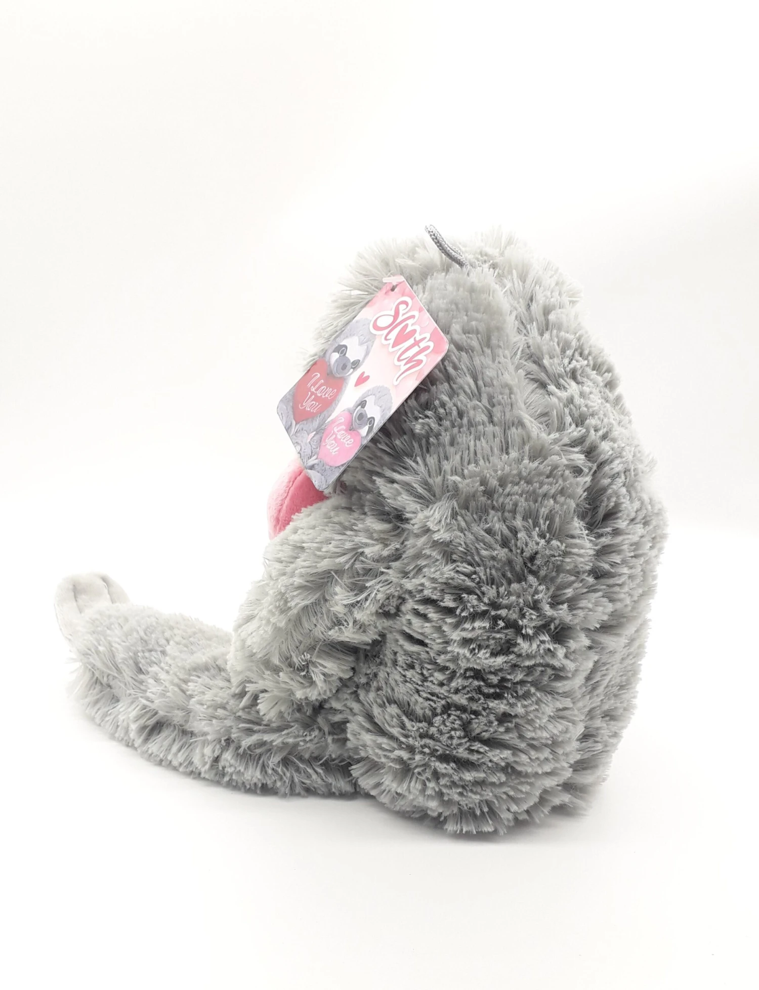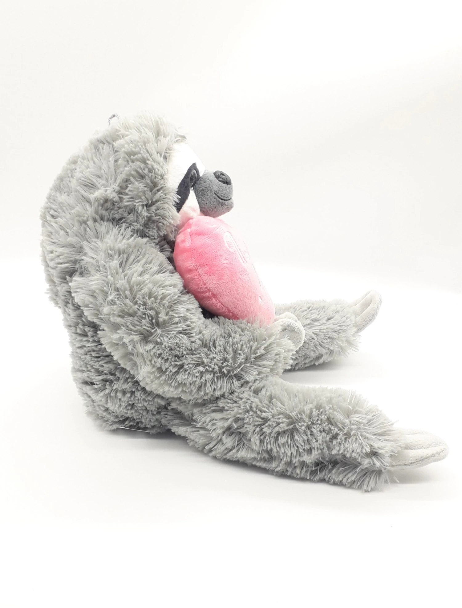 Die Hände sind mit einem Klettverschluss verbunden, das Herz am Kuscheltier angenäht.