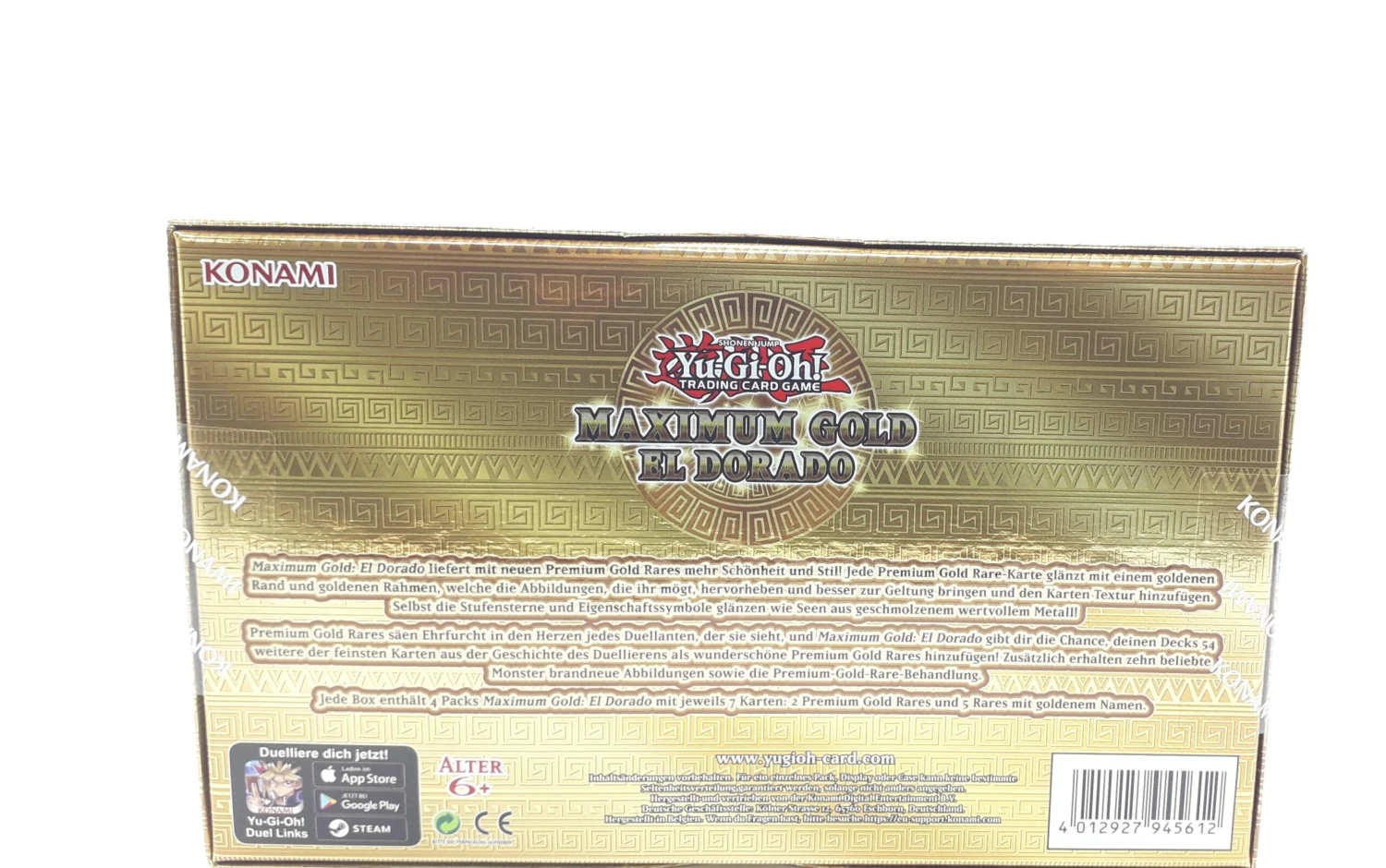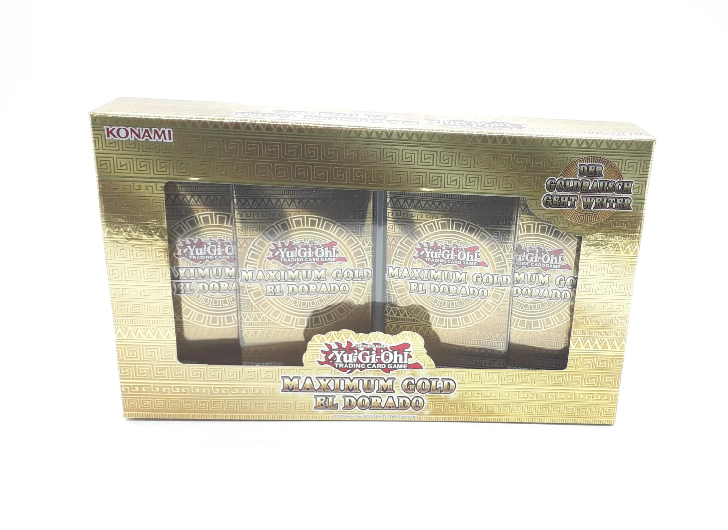 Jede Box enthält 4 Maxium Gold: El Dorado mit jeweils 7 Karten: 2 Premium Gold Rares und 5 Rares mit goldenem Namen.